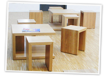 große Auswahl an Farben, Formen und Oberflächen aus Holz